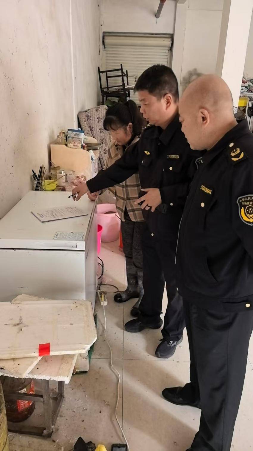 随后,陈峰同志带领太平市场监管所执法人员深入辖区内农贸市场、水产经营户等重点场所开展禁渔检查。在农贸市场,执法人员仔细查看水产品摊位,逐一核对进货台账等相关资料,排查是否存在非法捕捞渔获物交易行为。询问摊主进货渠道,要求其严格遵守禁渔规定,确保所售水产品来源合法合规。