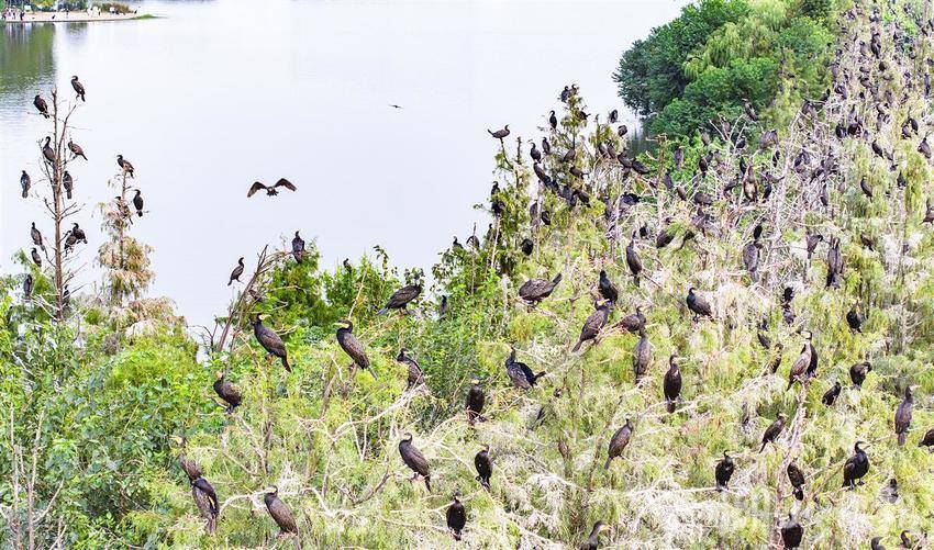 2025年10月14日,东湖“鸟岛”提前被鸟粪刷白。