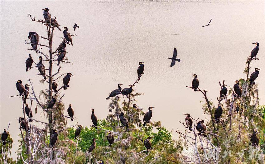 2025年10月14日,东湖“鸟岛”上的鸟。