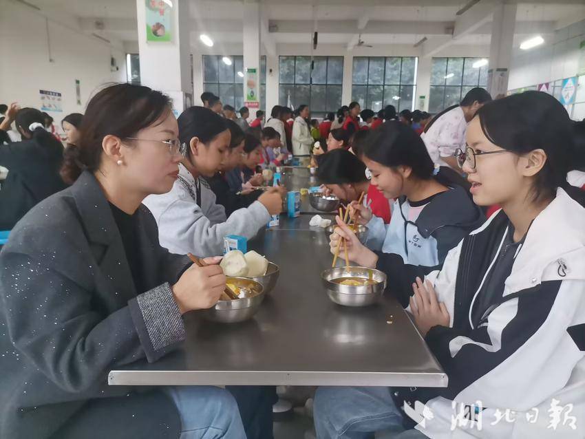 湖北日报客户端讯(通讯员 王伟)为强化校园食品安全管理,提升学生餐饮服务质量,切实筑牢“舌尖上的防线”,10月14日,丹江口市浪河中学膳食监督委员会例行组织成员走进校食堂,开展常态化“委员陪餐日”活动,委员们通过与学生同桌共餐、倾听学生心声等方式,为校园餐食质量与服务水平精准“把脉问诊”。