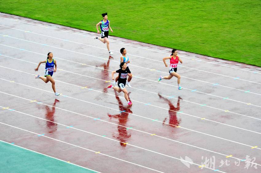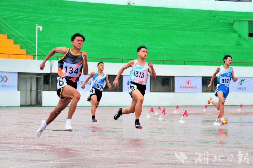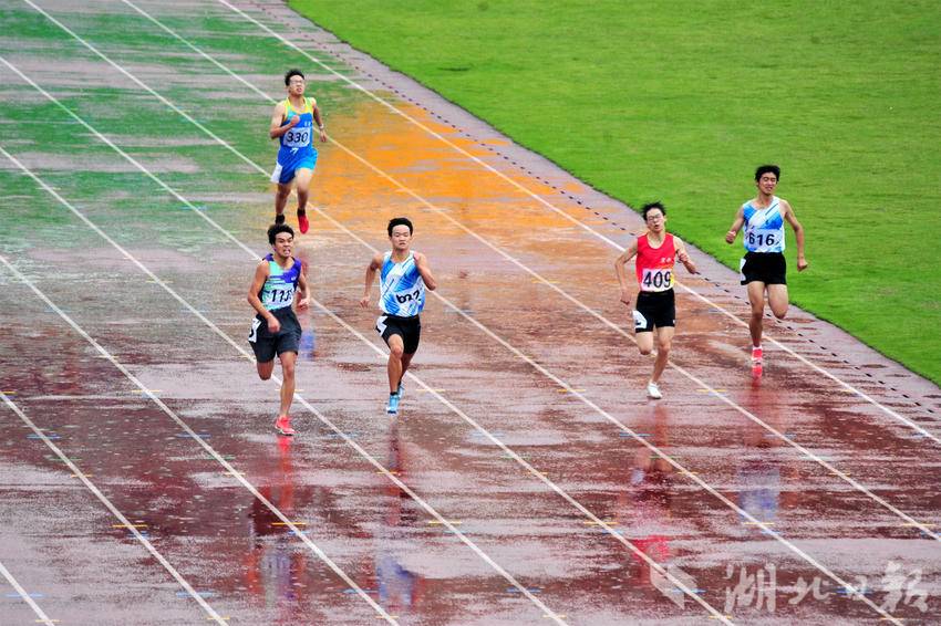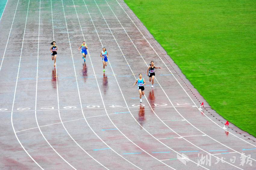 湖北日报客户端讯(通讯员张国荣)2025年10月14日,在宜昌市夷陵区体育场,参加宜昌市第七届运动会的青少年运动员正在角逐200米田径比赛。