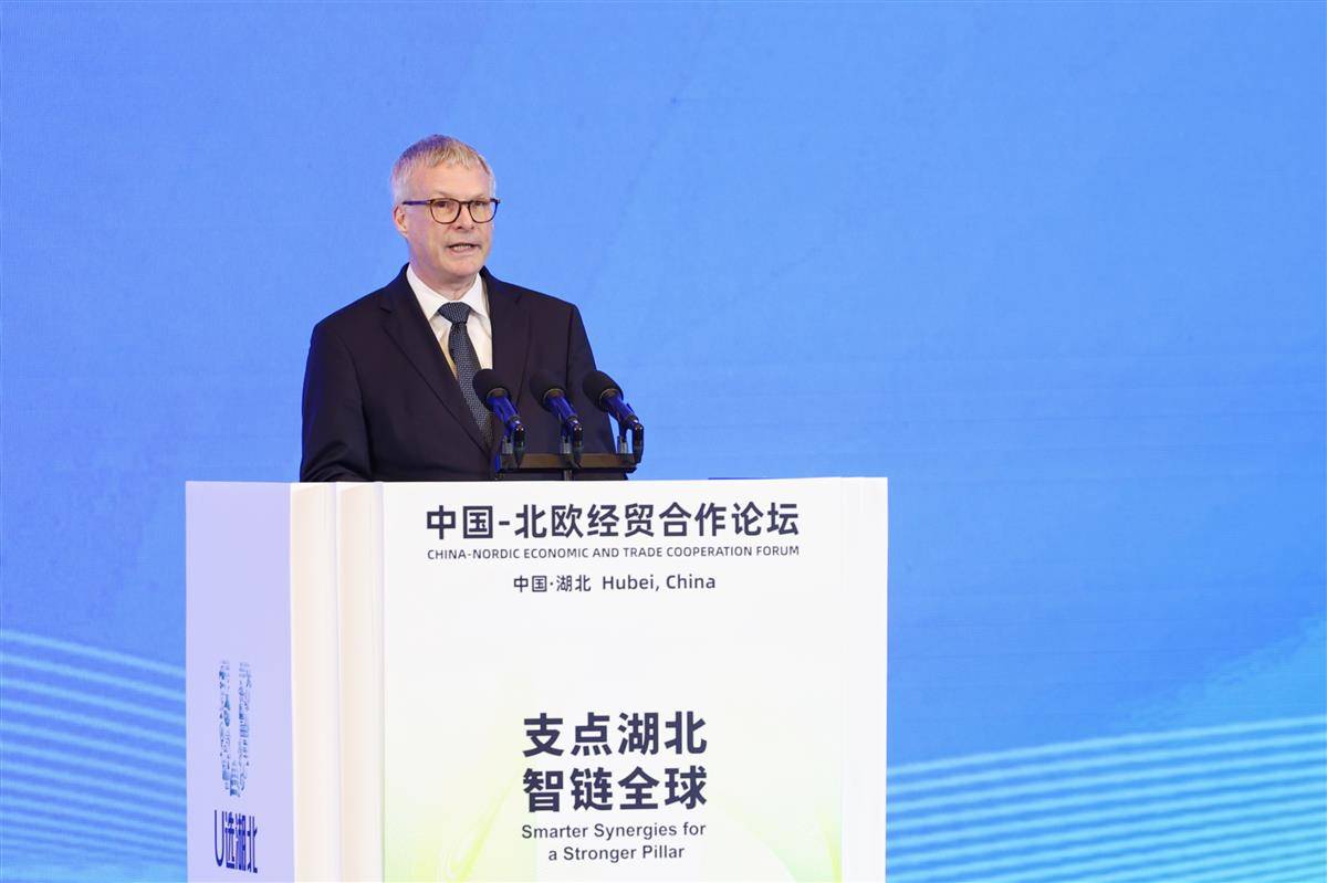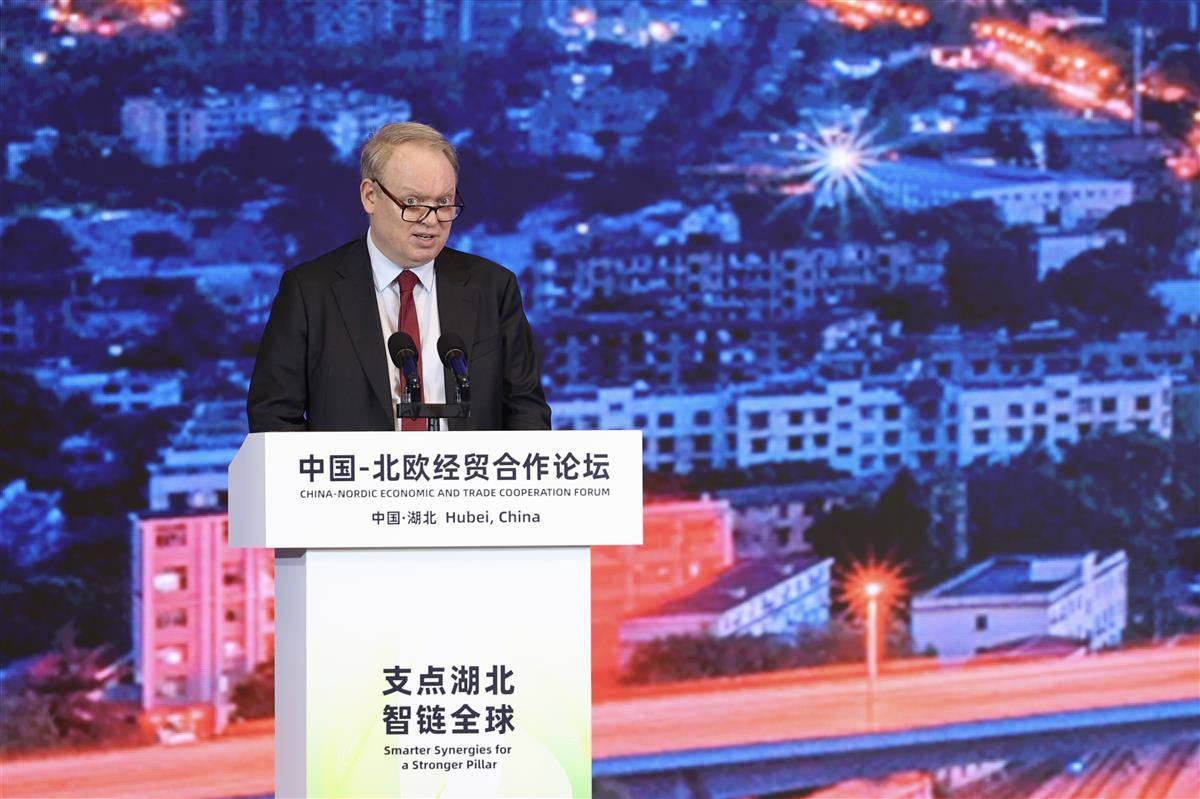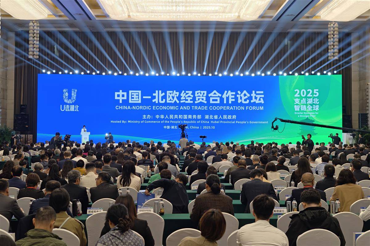 10月15日上午,2025中国—北欧经贸合作论坛暨中国湖北欧洲经贸洽谈系列活动在武汉东湖国际会议中心拉开帷幕。(湖北日报全媒记者 陈少哲 摄)