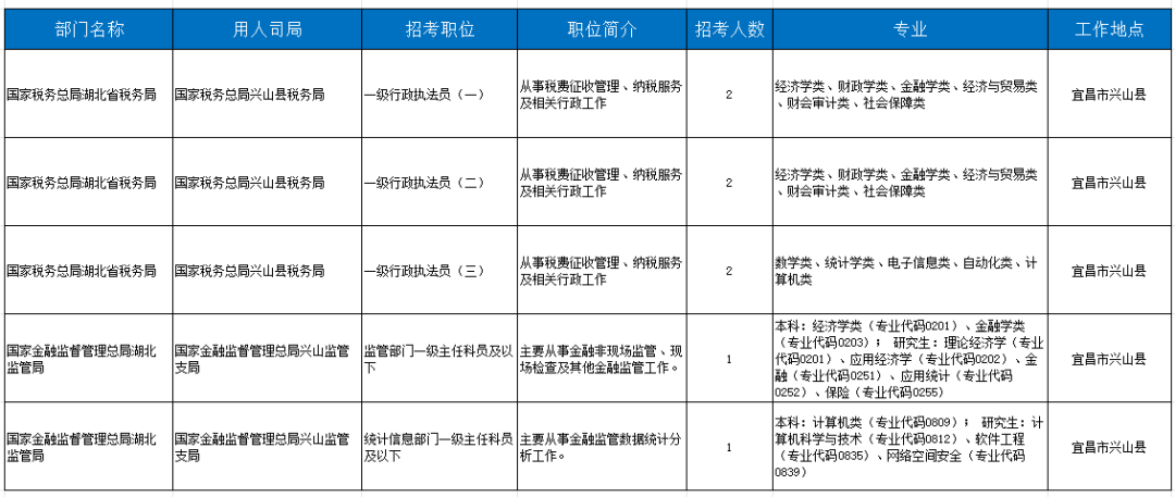 ▲兴山地区部分岗位及信息,详细表格可扫描文末二维码查看