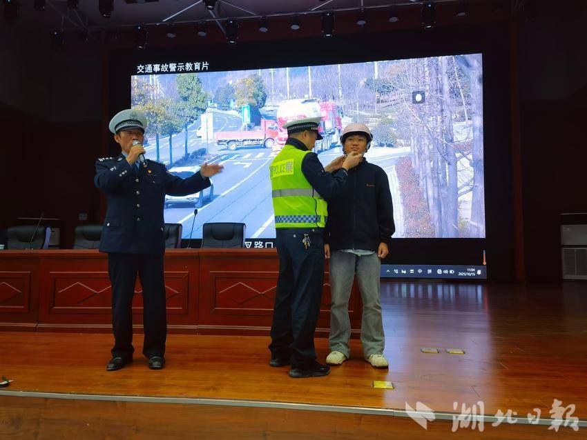 活动中,民警结合近期发生的交通事故开展宣传教育,强调骑行电动自行车必须佩戴头盔,不走机动车道等行为,严禁未成年学生骑行电动自行车、摩托车,时刻提醒,把安全放在第一位。同时,也教育学生们当好监督员,监督家长们开车不喝酒,喝酒不开车”,提高全民的交通安全意识、法治意识,达到“小手拉大手”的宣传效果,民警摒弃传统宣讲模式,以“精准滴灌”方式,借助图文课件用通俗语言为学生讲解交通安全法规,重点强调佩戴安全头盔的重要性,播放涉学生上下学典型事故案例视频、发放宣传单,让学生深刻认识“戴好头盔保安全”。
