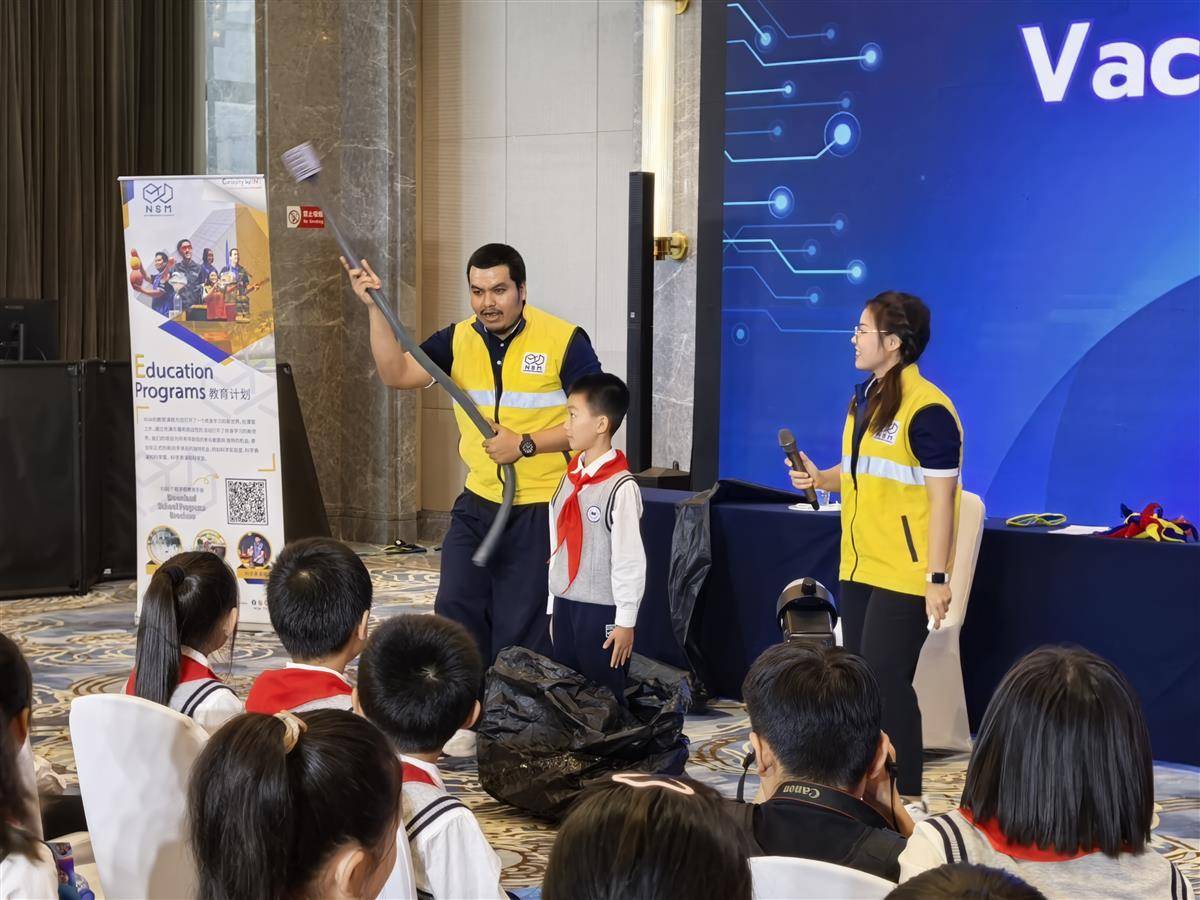 泰国国家科技馆的“奇妙的科学表演秀”,两位科普工作者用夸张但极富感染力的表演,展示着“真空”等科学原理,现场的孩子们看得目不转睛;马来西亚国油探索馆带来的“神奇的数学秀”,让枯燥的数学变得有趣,大家跟着边看边算边大声回答;俄罗斯尼古拉教授科学秀和新加坡科学中心的表演,也让孩子们沉浸于科学展示中。