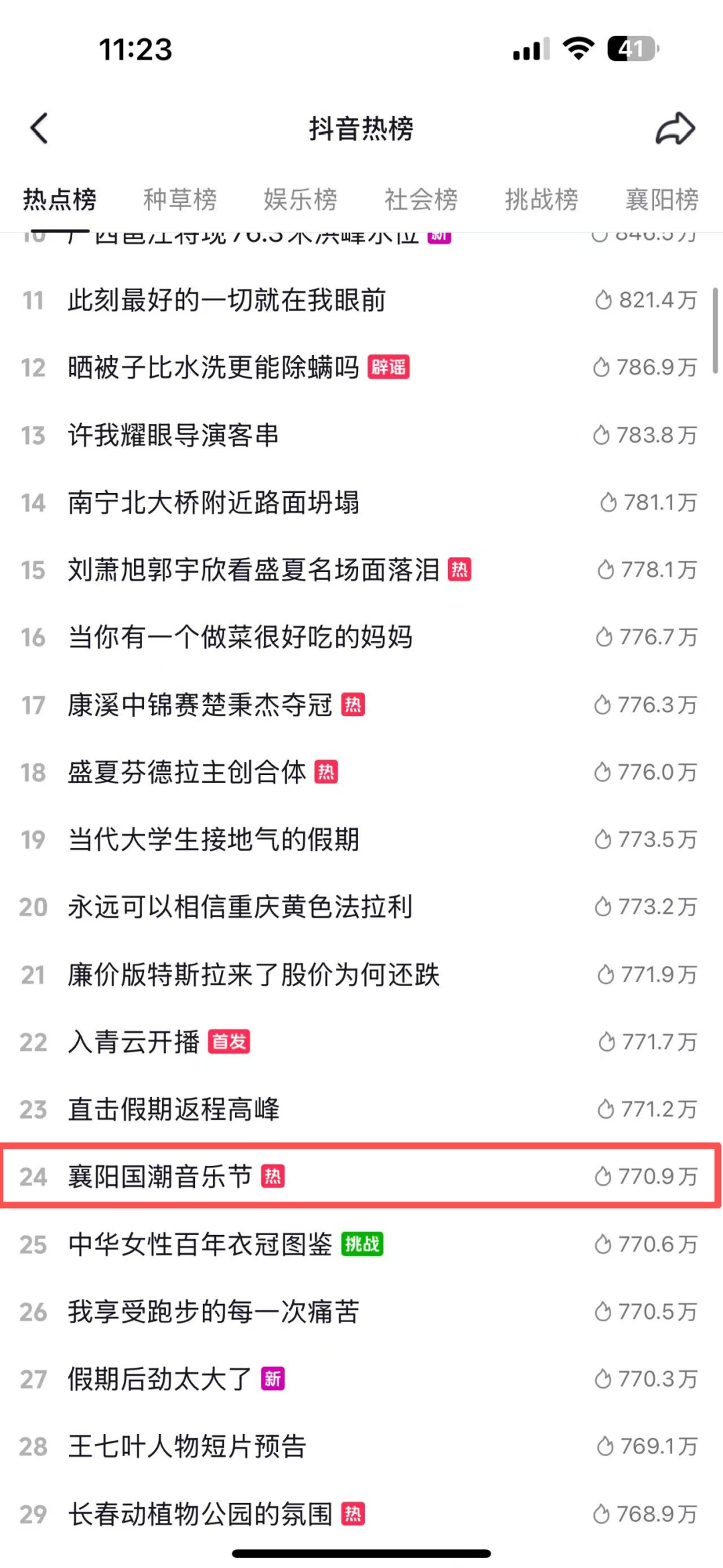 小编以#襄阳国潮音乐嘉年华 为话题标签在社交平台上搜索发现,相关视频累计播放量已上千万次,长时间占据抖音全国热榜。平台上,网友们热情高涨,纷纷发布各类帖子,“襄阳,我下次还来”的期待、“襄阳真的好感度up up”的夸赞,类似的帖子多达数千条,热度一路飙升,持续居高不下。此次音乐嘉年华,不仅在社交平台上引发了大家的热烈讨论,更让襄阳这座城市收获了如潮般的好评,魅力值直线拉满。