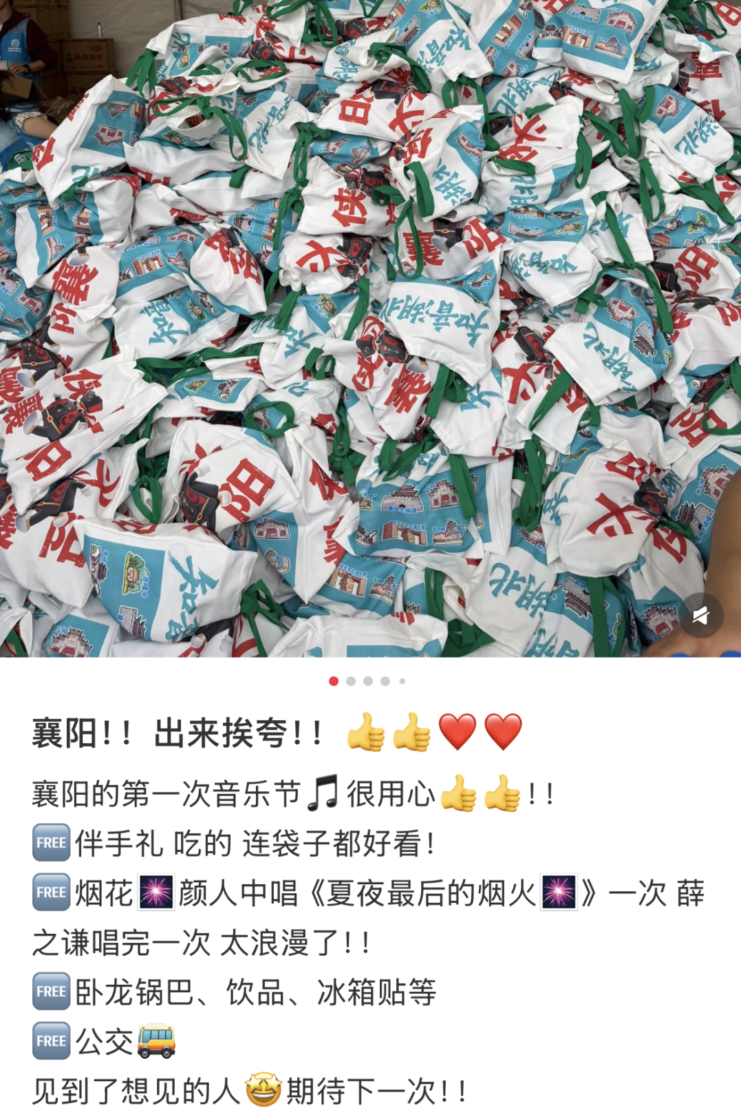 10月8日,现场总共发放文旅大礼包10000份,内含襄阳牛肉面、丽波牛奶、卧龙锅巴等名优特产,让乐迷在享受音乐的同时,也将“襄阳味道”带回家,深度感受襄阳的城市文化与独特魅力。