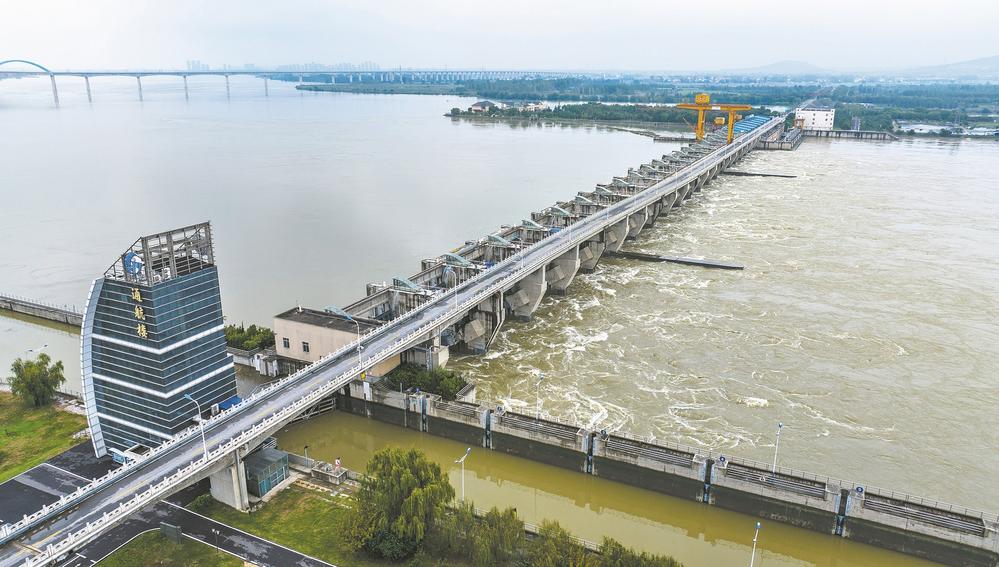 10月15日拍摄的江水通过汉江崔家营航电枢纽。(来源:襄阳日报