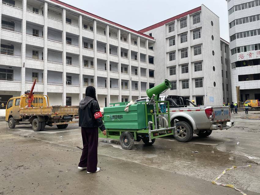 五十二中学校施工现场紧邻居民小区,施工噪音、扬尘及出行安全等问题直接关系到周边居民的日常生活。此次检查中,社区工作人员特别关注施工对居民的影响,一方面查看施工现场的扬尘防控措施是否落实,如喷淋系统是否正常运行、裸土是否覆盖、进出车辆是否冲洗;另一方面,与周边居民代表沟通,收集大家对施工期间噪声管控、出行通道设置等方面的意见建议。