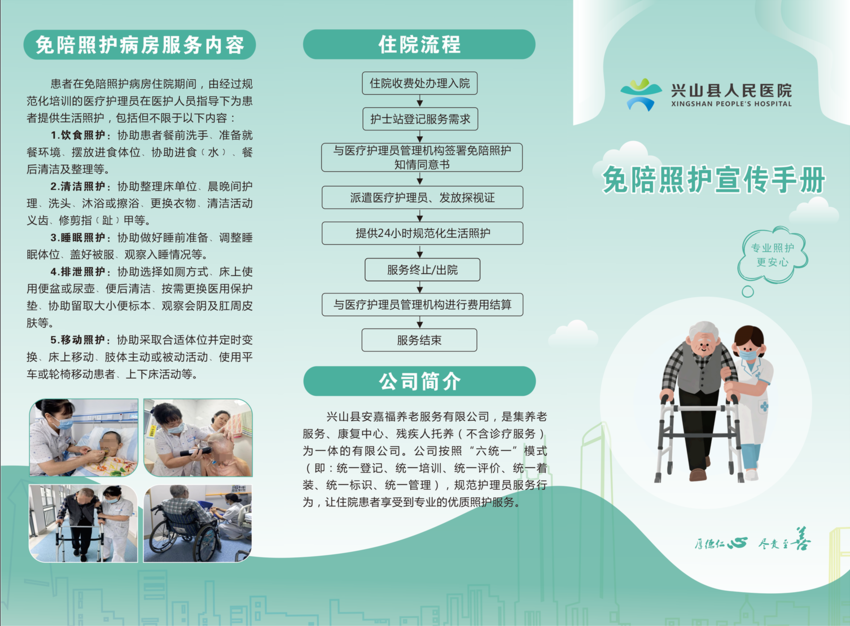 免陪照护试点病区(病房)的推行,不仅是一项服务的创新,更是一种护理理念的革新。既减轻家庭照护负担,让亲情从烦琐的护理中解脱出来,回归情感陪伴;又提升护理专业价值,让护士在团队协作中发挥更大作用;最终让患者受益,获得更专业、更安全、更温暖的医疗照护。