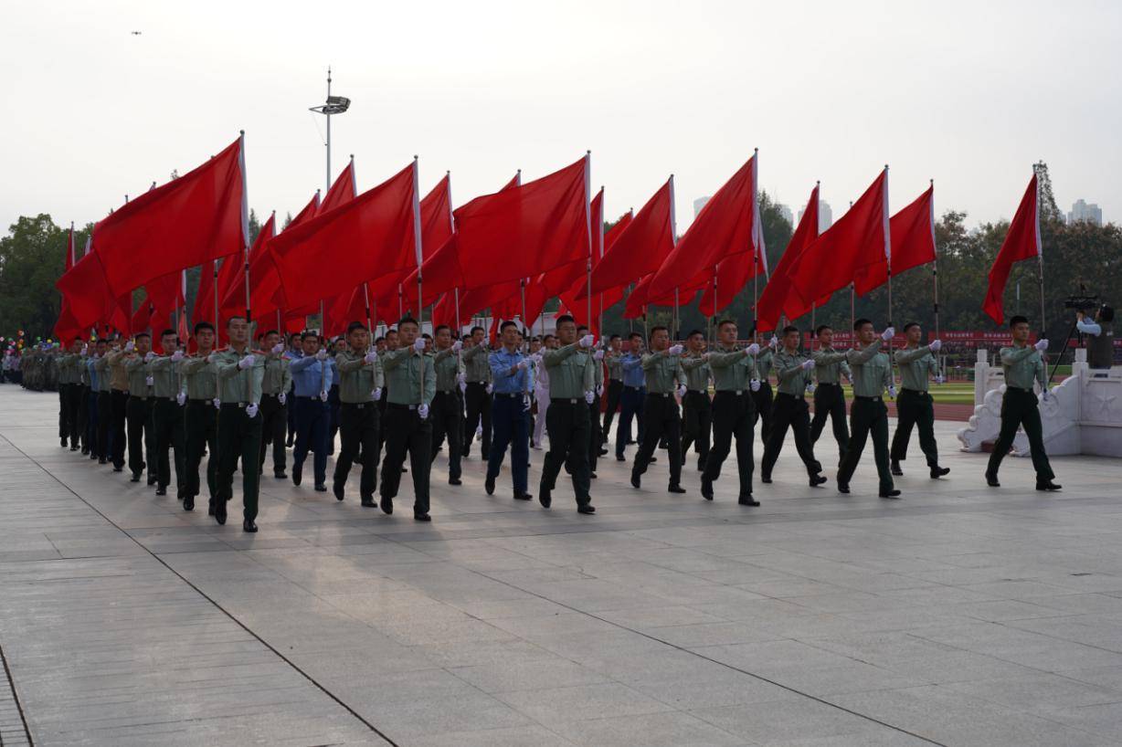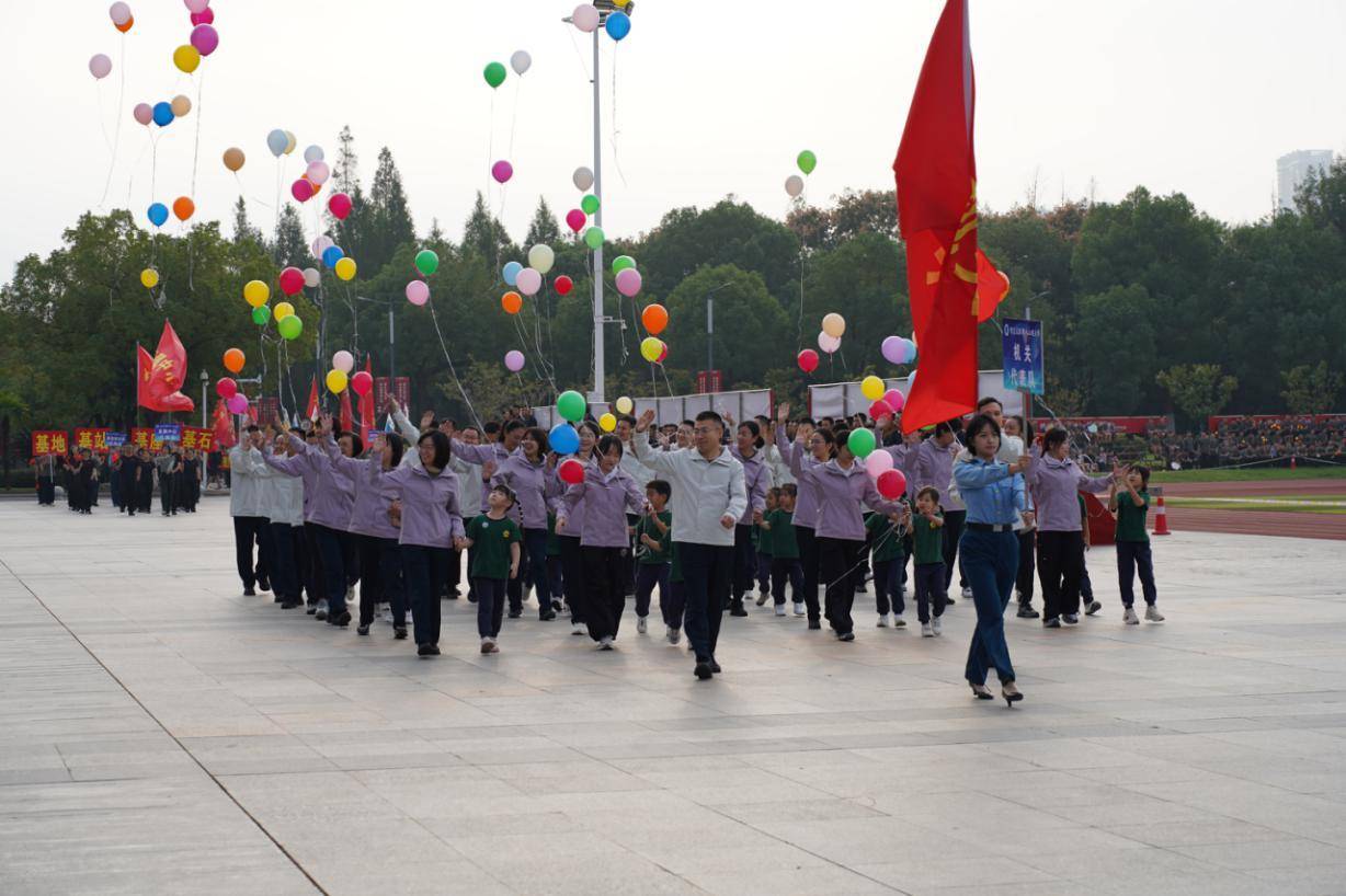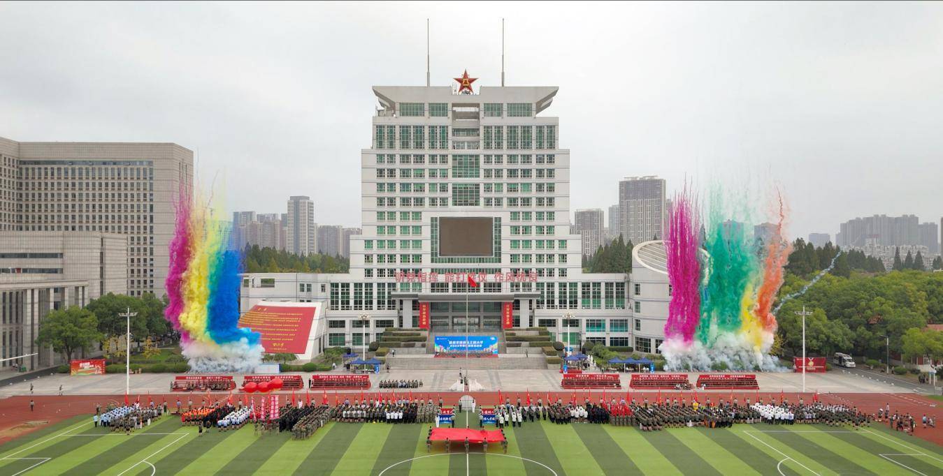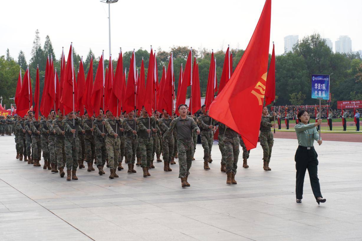 运动会开幕式上,护旗方队正步铿锵、靴声如鼓,八一军旗在晨光中猎猎飘扬。千余名官兵组成方块队列阵待发,各学员大队方队的呐喊震彻全场。在现场,幼儿园的小朋友与机关方队队员一起放飞气球。漫天气球飞舞在绿色军营上空,和着运动场飞扬的旋律,拉开了这场融军味、战味、信味的军事体育盛会序幕。