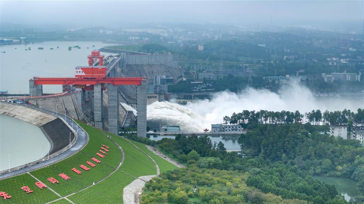 丹江口水库开闸泄洪迎战秋汛。(通讯员 刘昆 摄)