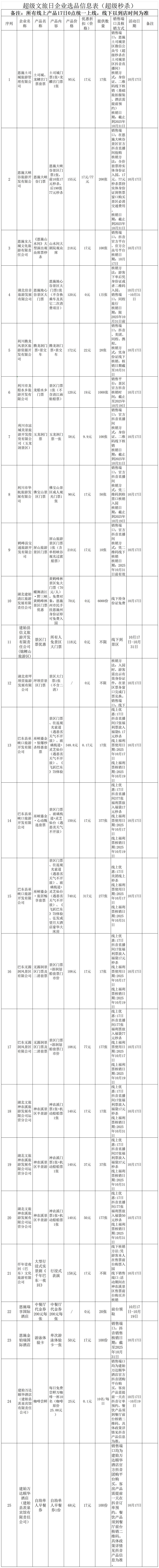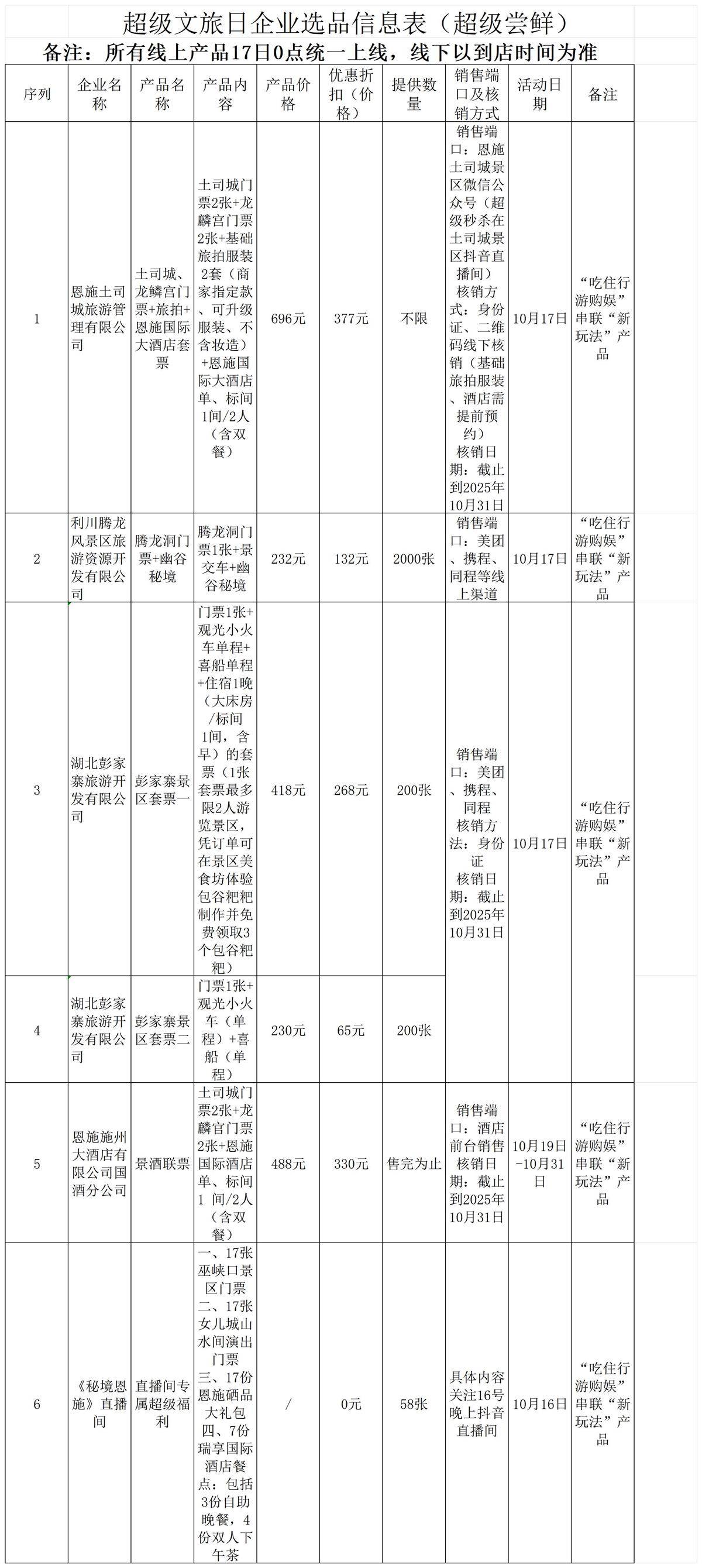 超级文旅日企业选品信息表超级秒杀