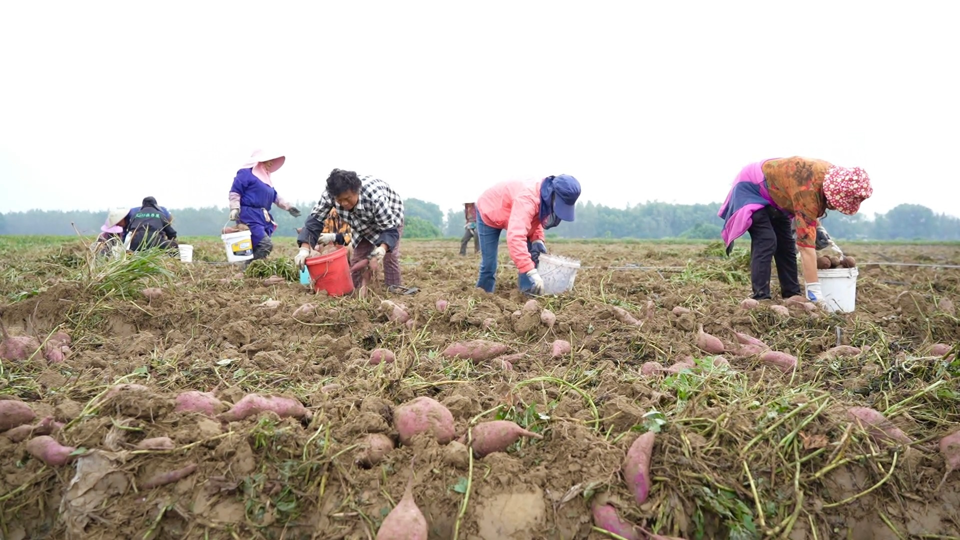 “今天要发10万斤到宜城和武汉,昨天发了8万斤,每斤收购价9毛。”宏军合作社负责人荣同军蹲在地头,指着满地个头饱满的紫薯说道,“咱这红薯可是‘错峰上市’,采收期可从7月底一直延续到10月底,分批采收,既能保证口感,又能稳住收益。”