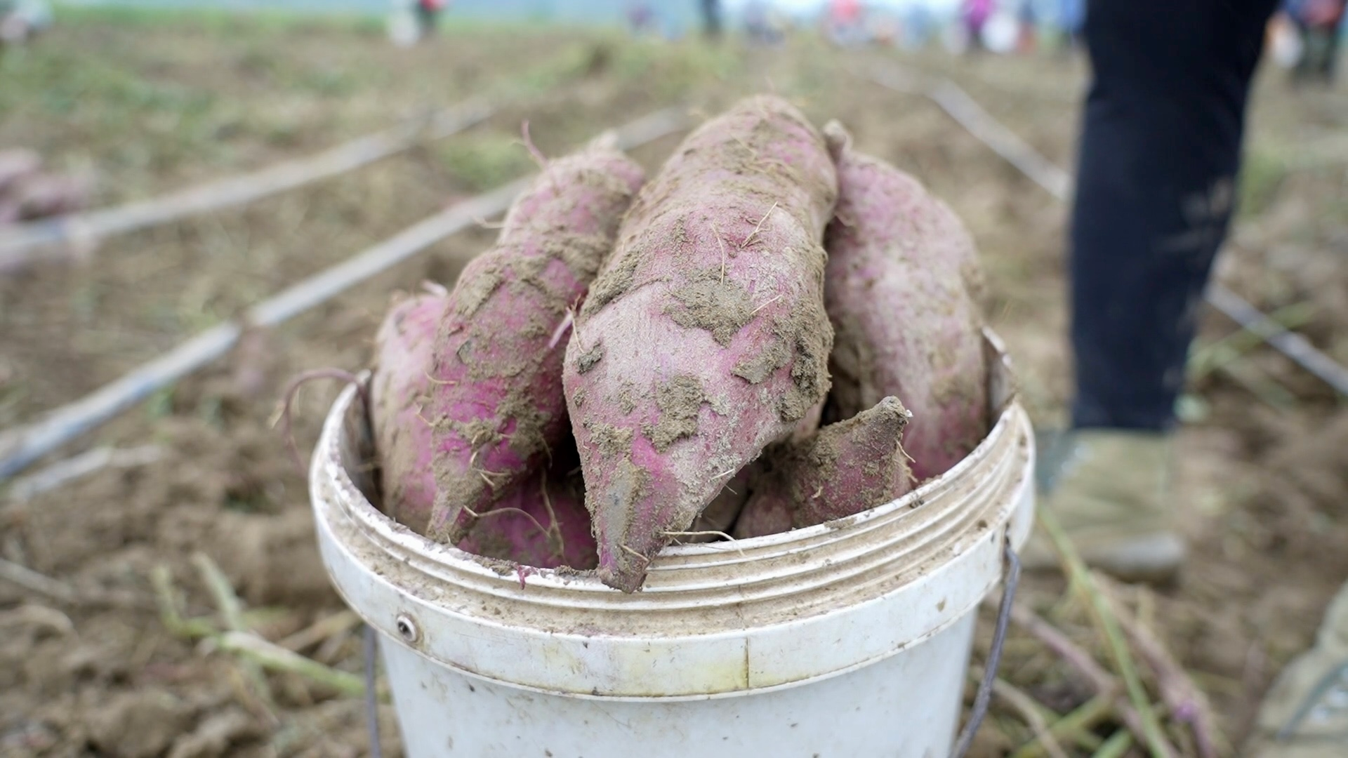 湖北日报客户端讯(通讯员 周莹 艾帅)近期,位于潜江市竹根滩镇美丽村的潜江市宏军蔬菜合作社(以下简称宏军合作社)600亩红薯基地迎来丰收。紫红色的红薯藤蔓铺满田垄,专业收割机在田间来回穿梭,数十名农户忙着采收被收割机挖出来的“二段花叶”紫薯,田间地头洋溢着丰收的喜悦。