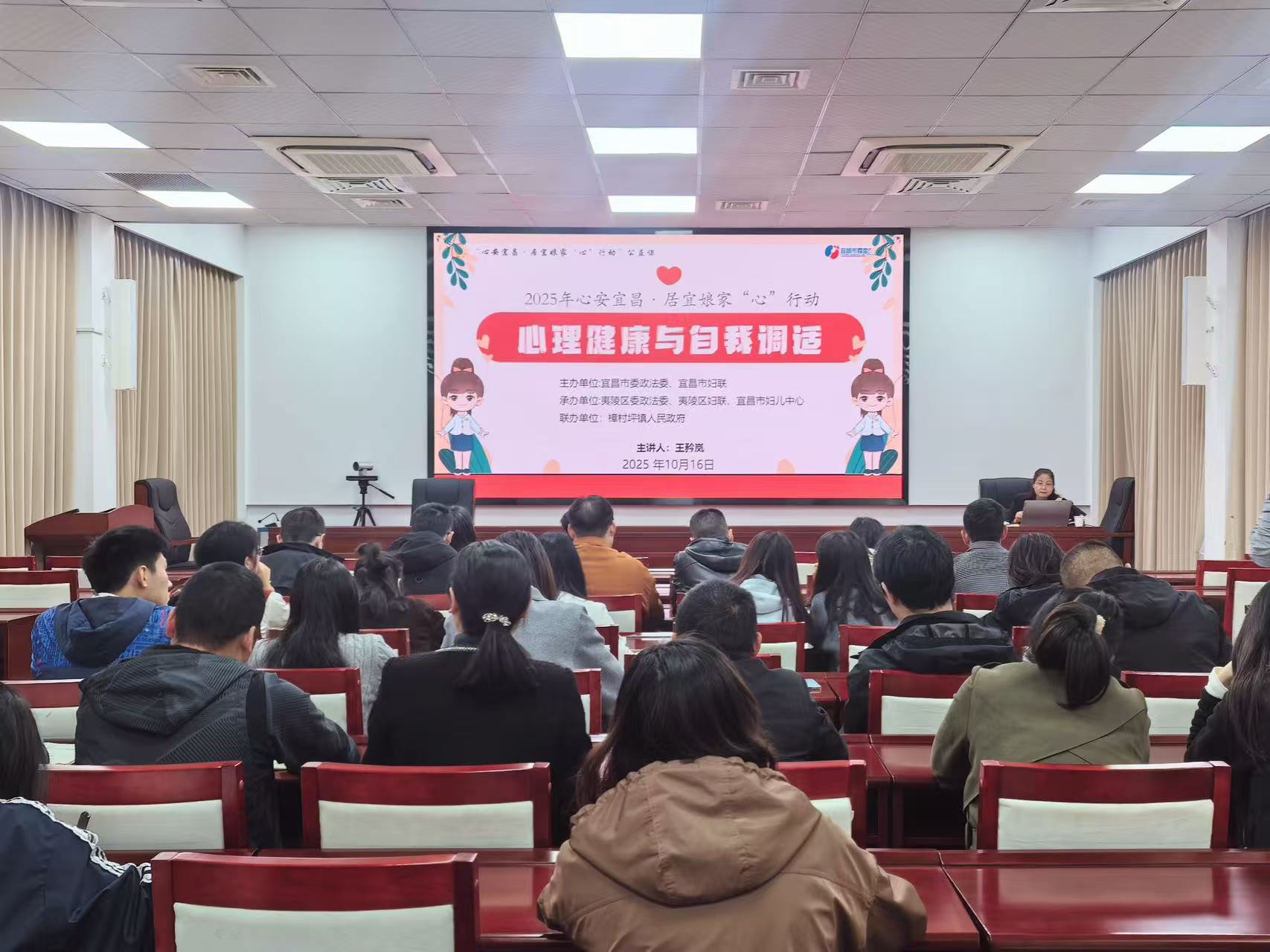 活动伊始,参加人员共同观看了“心安宜昌·居宜娘家‘心’行动”宣传片。随后,宜昌市婚恋交友协会会长、职工心理健康协会副会长兼秘书长王矜岚带来了主题为《心理健康与自我调适》的专题讲座。讲座聚焦基层工作者在工作与生活中常见的心理压力来源,系统讲解了如何识别压力信号,并分享了实用的情绪调适方法。通过理论阐释、现场交流及实例分析等多种形式,有效引导参与者关注个人及他人的心理状态,助力营造健康和谐的家庭环境与社会风尚。