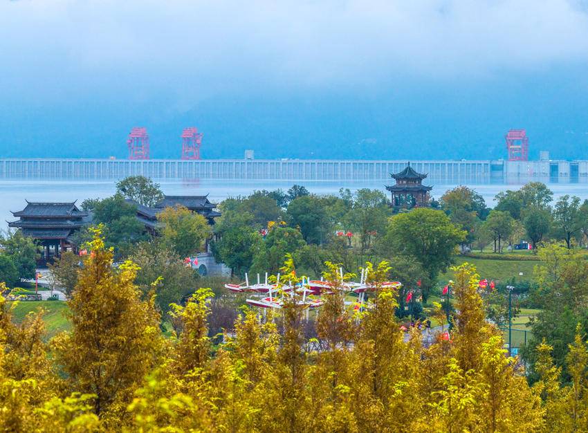 湖北日报客户端讯(通讯员王罡、樊启富)暮秋时节,秋雨连绵,三峡大坝坝前湖北省宜昌市秭归县长江两岸层林尽染,色彩斑斓,美若画卷。
