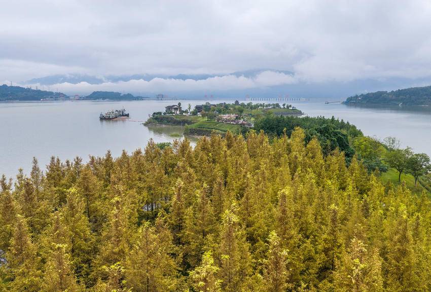 10月17日,在三峡大坝坝前湖北省秭归县木鱼岛拍摄的秋日景色(无人机照片)。