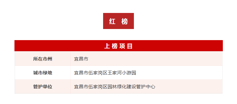 湖北日报客户端讯(通讯员 郑雅芳 张彦)近期,省住建厅对全省城市绿地管理养护情况进行暗访测评,抽查17个市州的103个城市口袋公园。根据暗访结果,伍家岗区王家河小游园上红榜。