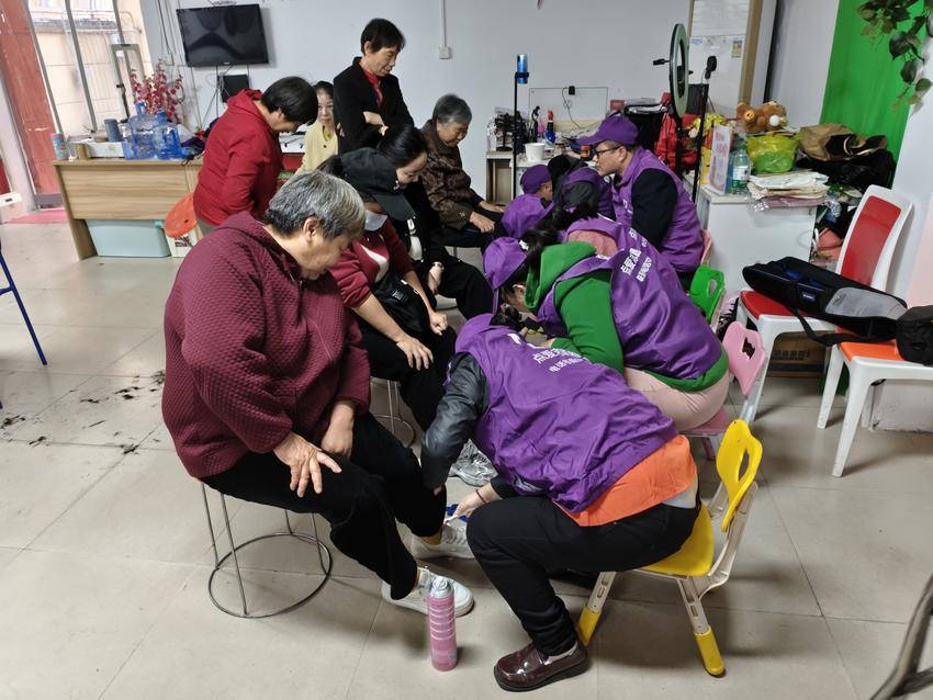 活动现场秩序井然,各服务区域人气十足。理发区,志愿者理发师仔细询问需求,为退役军人修剪利落发型,给行动不便的老人耐心打理头发;义诊区,医护人员细致为居民测血压、听心肺,针对高血压、关节炎等老年常见病症给出用药与饮食建议;口腔检查区,牙医逐一检查牙齿健康,科普假牙护理、牙周病预防知识;擦鞋区,志愿者手持工具认真擦拭,让旧鞋焕然一新。