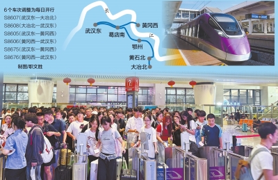 据了解,本次调整的6个车次分别为S8607(武汉东—大冶北)、S8608(大冶北—武汉东)、S8605(武汉东—黄冈西)、S8606(黄冈西—武汉东)、S8675(武汉东—黄冈西)、S8676(黄冈西—武汉东),这6个车次调整前均为周五、周六、周日开行,调整后改为每日开行。