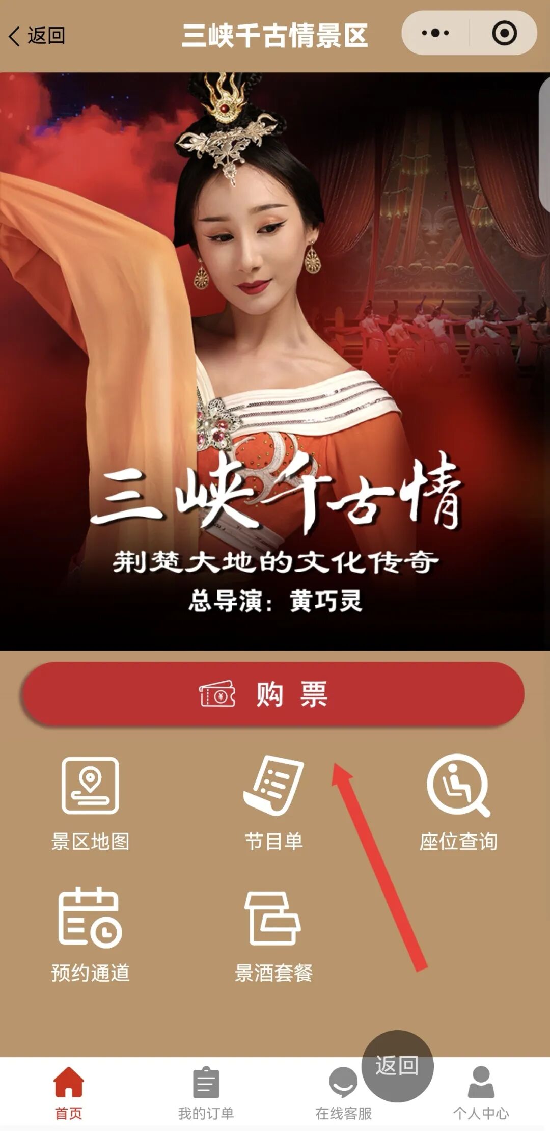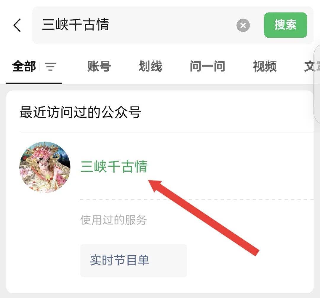 ↑↑↑微信搜索框搜索“三峡千古情”,点击三峡千古情公众号。