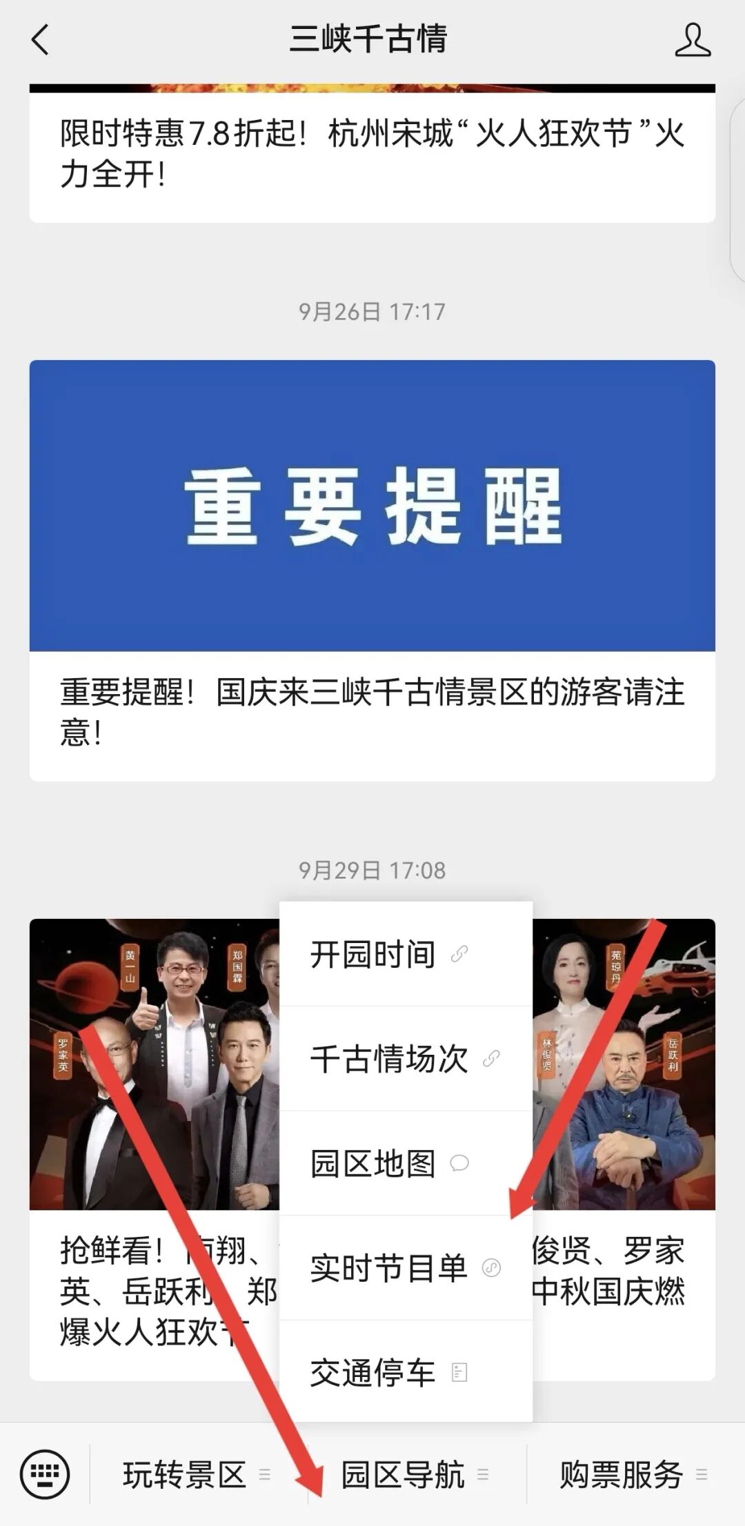 ↑↑↑点击最下方“园区导航”,进入实时节目单。