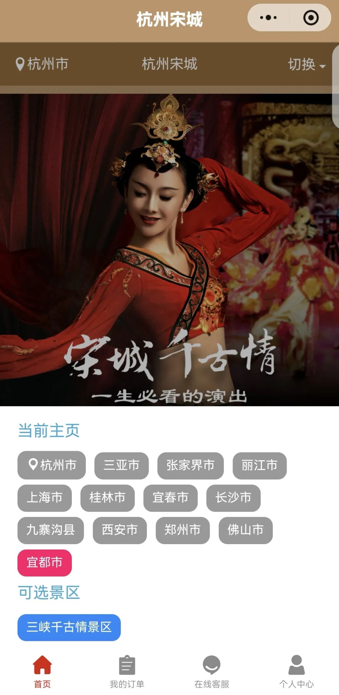 ↑↑↑选择宜都市,点击三峡千古情景区。