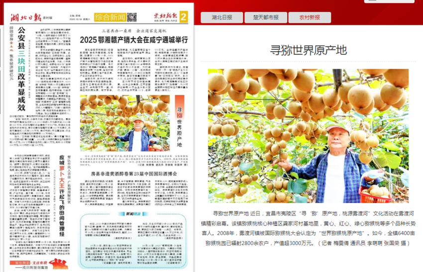 2008年,雾渡河镇被国际猕猴桃大会认定为“世界猕猴桃原产地”。如今,全镇6400亩猕猴桃园已辐射2800余农户,产值超3000万元。(记者 梅雯倩 通讯员 李萌萌 张国荣 摄)
