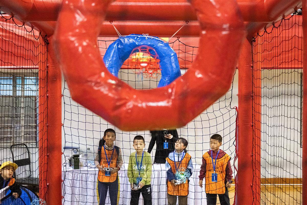 10月18日,小选手们操作无人机进行“无人机足球”比赛。(湖北日报全媒记者 任勇 摄)
