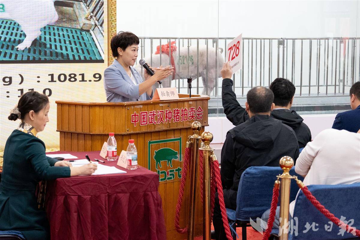 湖北日报讯(记者汪彤、通讯员付雪林、谢毅)10月18日,全国种猪大赛(湖北赛区)暨第25届中国武汉种猪拍卖展销会与中国种猪产业发展论坛在华中农大举行,来自全国8省(自治区)的19家养猪企业同台竞技。15头特优级种公猪在展销会上公开拍卖,“猪王”以10.8万元价格落槌。