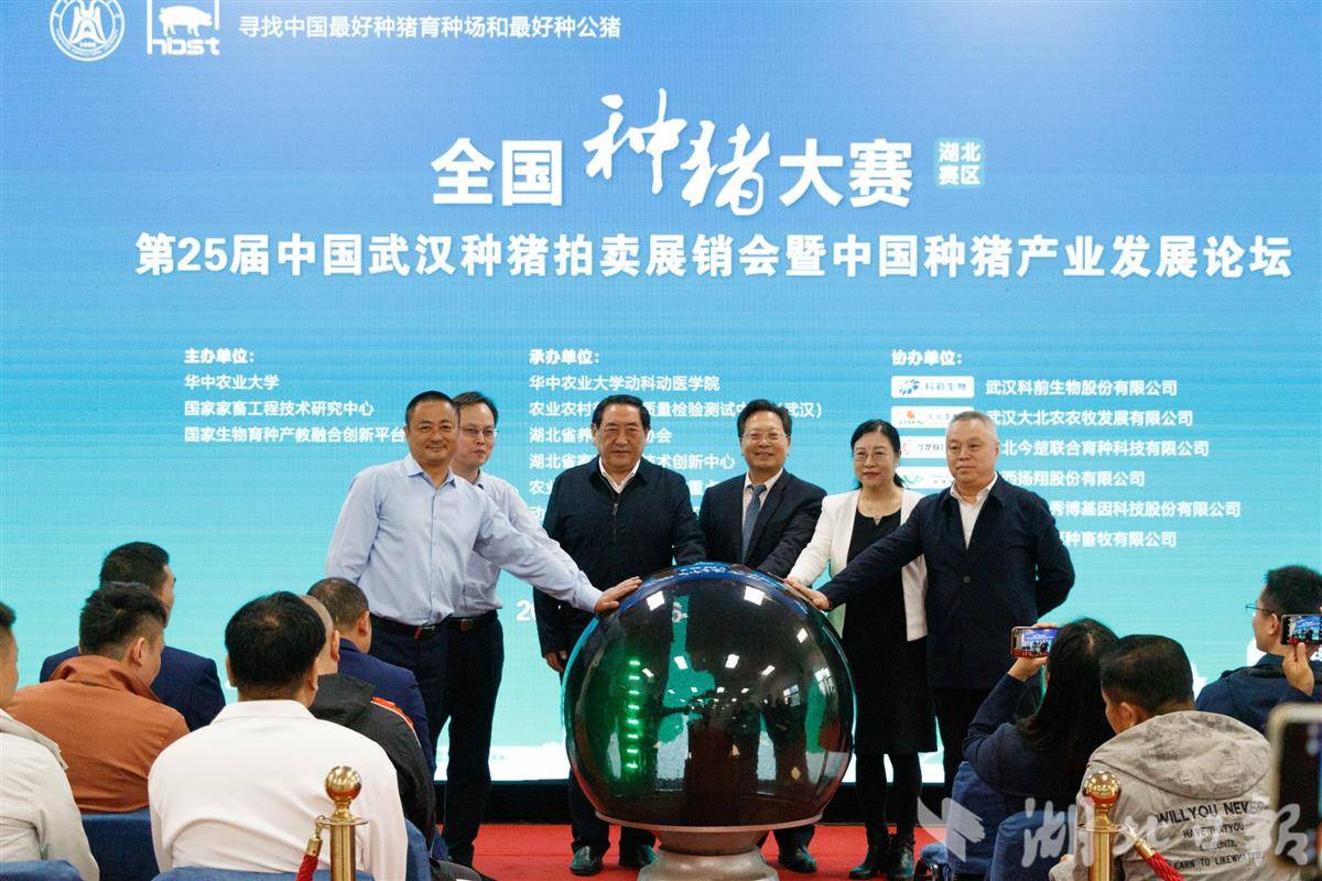 湖北省农业事业发展中心党组成员、副主任牛捍卫、中国畜牧业协会会长蔡辉益、省农业发展中心总工程师肖后军、中国工程院院士陈焕春,华中农业大学党委常委、副校长杨少波,湖北省农业农村厅、湖北省农业事业发展中心以及华中农业大学相关职能部门负责人出席了种猪大赛启动仪式。全国部分养猪行业协会、养猪企业及相关企业代表等千余人参加了种猪拍卖展销会、种猪产业发展论坛及相关活动。