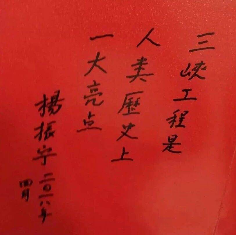 杨振宁院士在三峡工程展览馆的题词 三峡集团供图