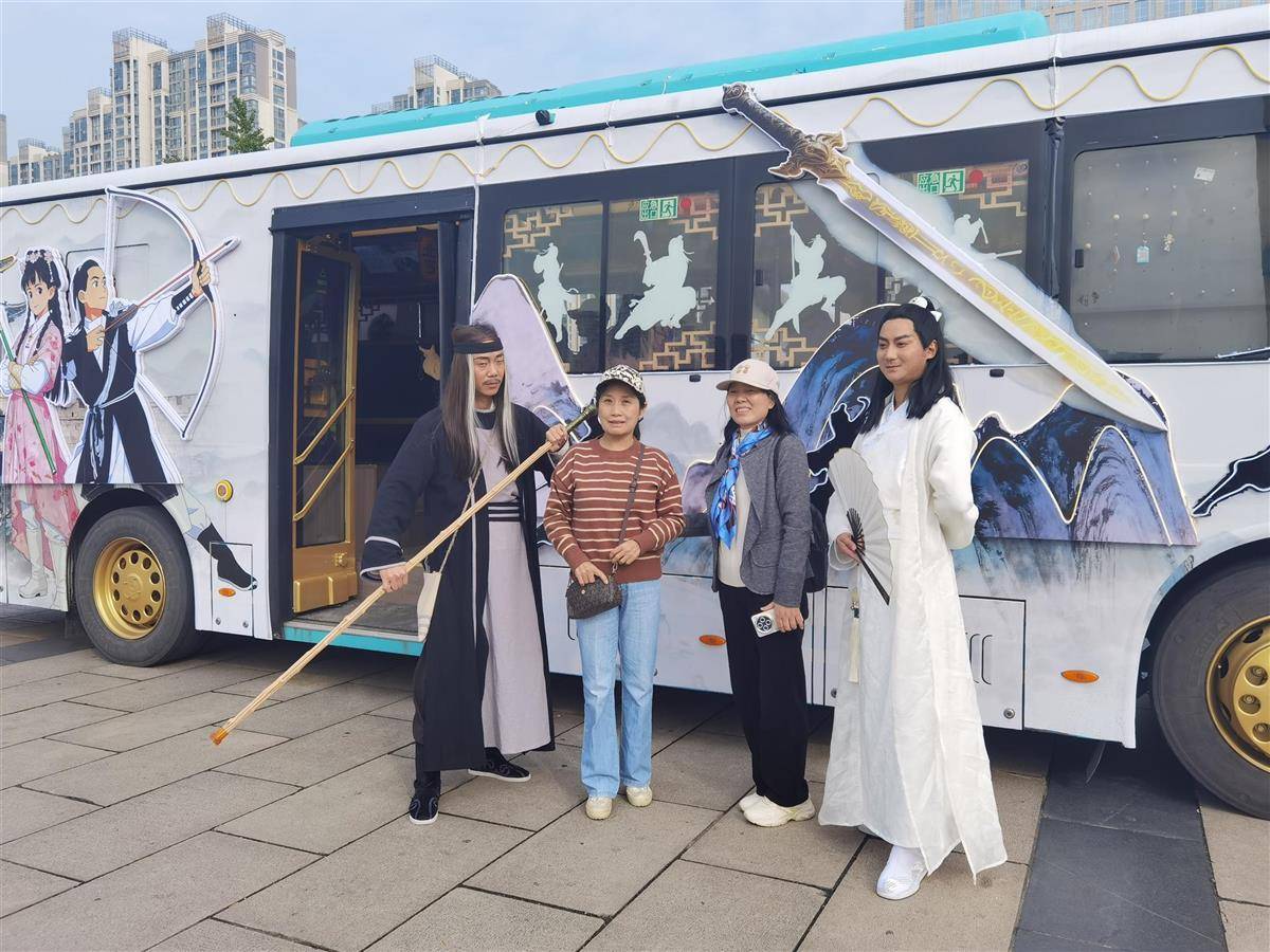 湖北日报讯(记者褚楠、通讯员赵明星)“听说侠义公交升级了,我们特意来体验。”10月19日,在诸葛亮广场襄阳马拉松起点,55岁的黄守琴与同伴登上“华山论剑”主题侠义公交,与柯镇恶、梅超风、欧阳克等经典武侠人物合影留念。