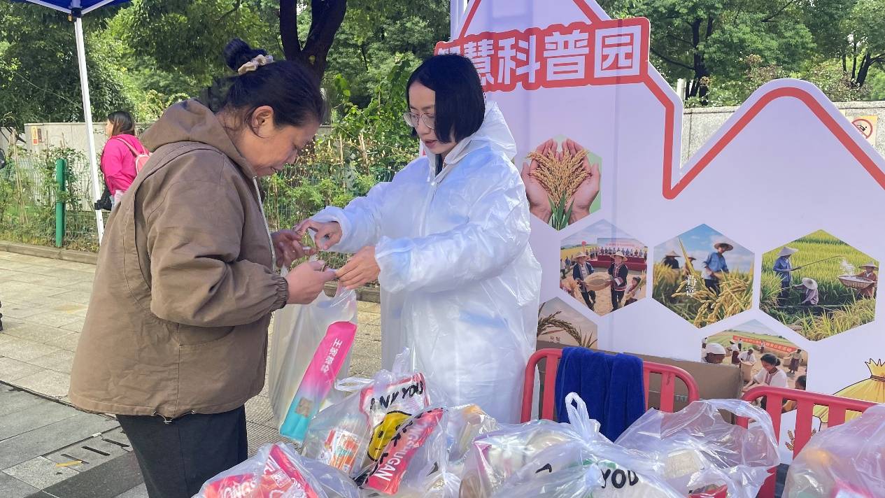 秋雨微凉,却难挡市民的热情。在活动现场,四大核心互动区人头攒动。在知识问答站,市民们踊跃参与答题,在挑战中学习粮食安全知识,答对者欣喜地领取“米博士”科普玩偶。
