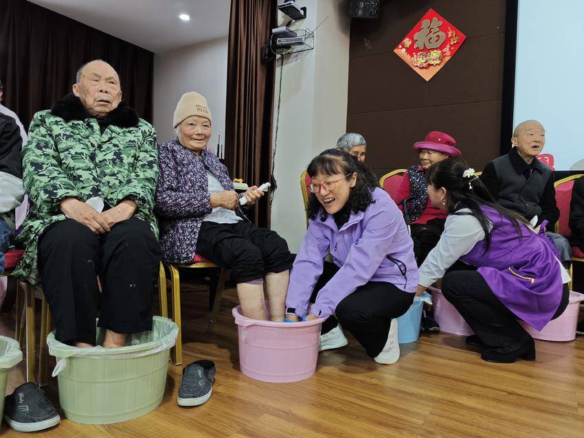 除了文艺表演,颐养院还特别安排了艾草泡脚、集体生日会等暖心环节,用实际行动呵护老人健康,传递节日祝福。