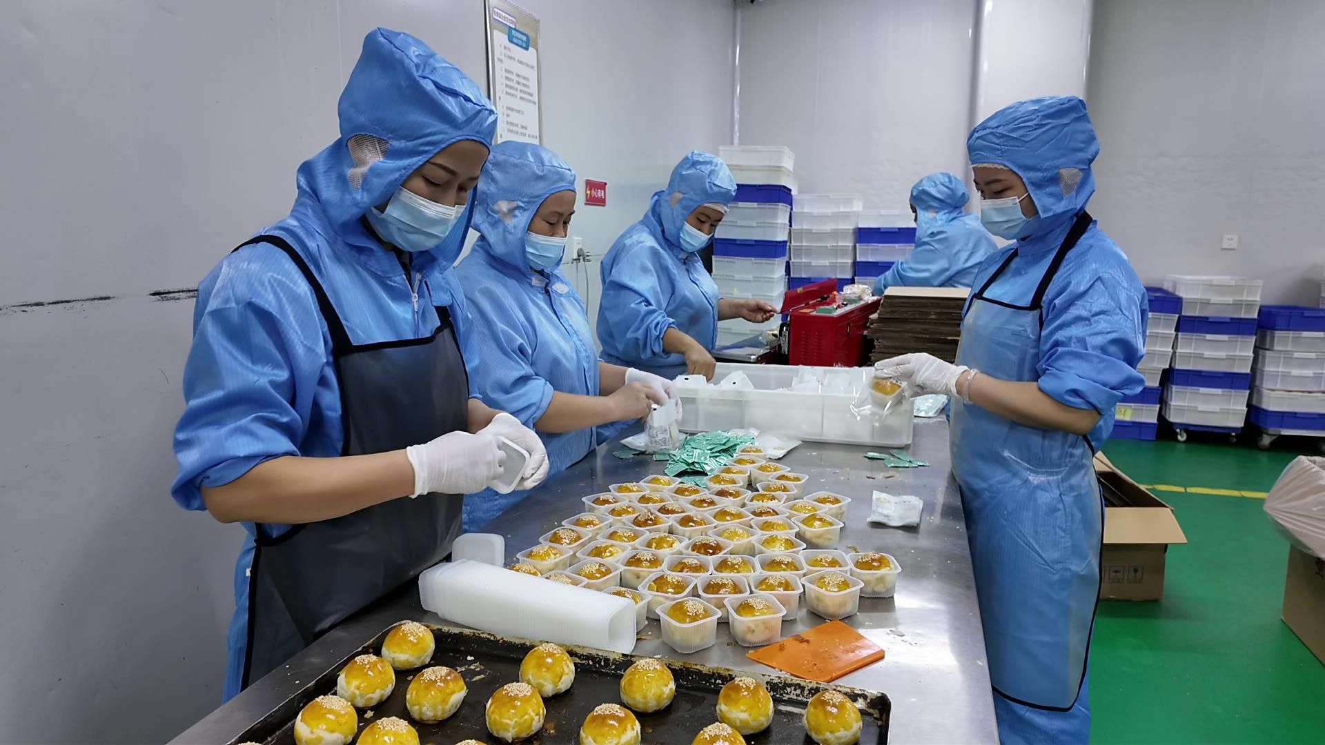 走进桂香园的现代化生产车间,全自动生产线正有条不紊地运转,确保了基础环节的高效与精准,而在一些关键的制作步骤中,依然能看到老师傅们忙于手工制作的专注身影。