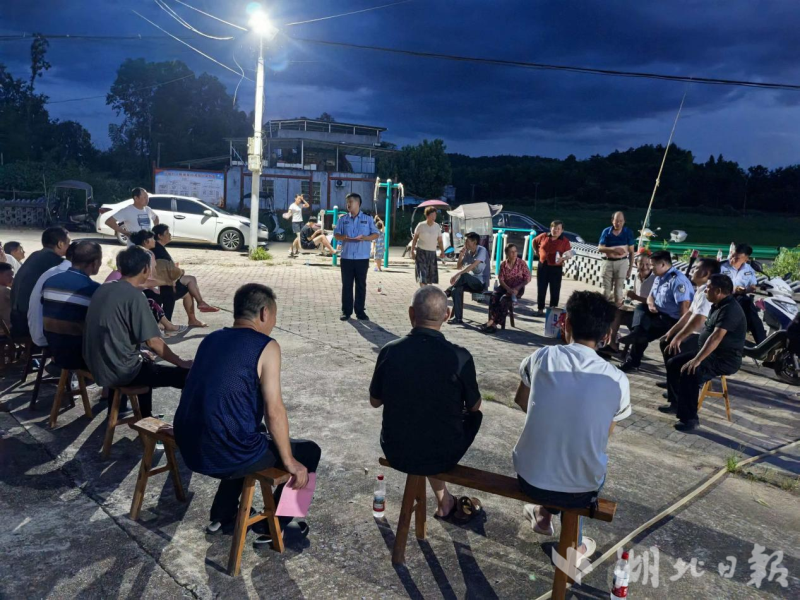 每当夜幕降临,石城镇辖区内的22个村文化广场、113个村湾屋场上,一场“湾子夜话”正在火热进行。镇综治中心联合派出所,将交通安全宣传融入村民议事会,通过播放《铁骑惊魂》警示片、剖析本地交通事故案例,用“身边事”警示“身边人”。在荻洲村,一场电影下乡活动吸引100余名村民观看。影片中,农用车违规载人引发的惨痛事故让观众深受震撼。