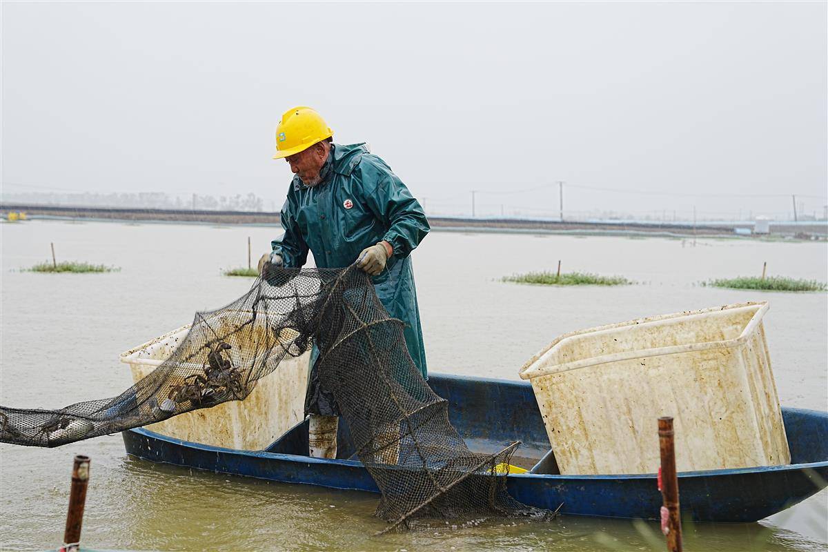 鄂州市梁子湖蟹农搬运刚出湖的螃蟹