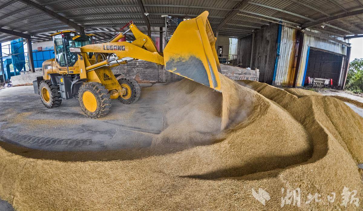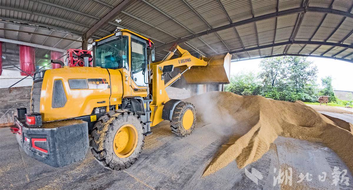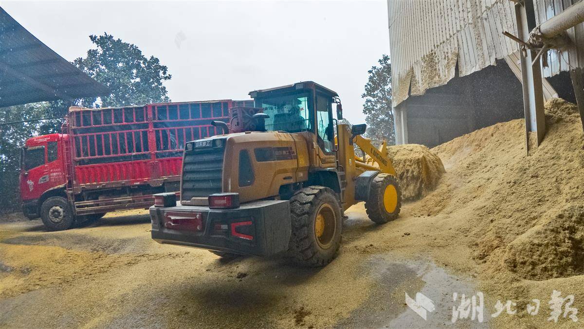 连日阴雨连绵,当阳加快组织农户抢收抢烘,动员合作社、种植主体和各种社会力量有序调度农机,抢收秋粮;新增烘干设施24小时不停机,公布全市41个粮食烘干惠农中心具体地址,方便群众就近烘干粮食,确保秋粮颗粒归仓。截至目前,该市秋粮收获50万亩水稻、38万亩玉米,41个粮食烘干点已完成烘干秋收产量的93%。(湖北日报全媒记者 刘曙松 通讯员 陈昕 摄)