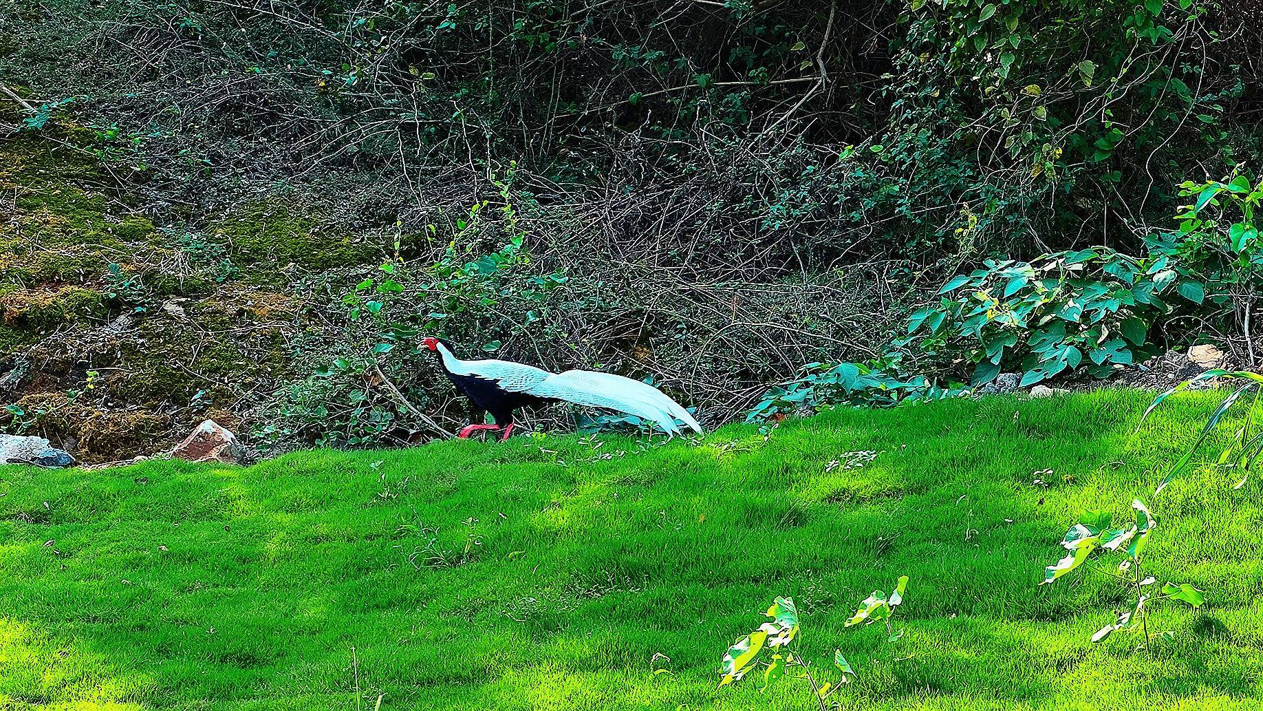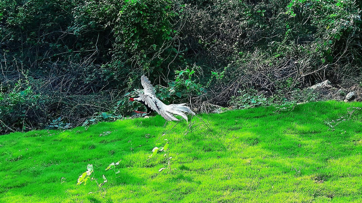10月15日,鄂州市杜山镇三山村龟头湾,一只白鹇在山间,或悠闲漫步、或低头啄食、或展翅飞翔,其优雅身姿与周边的自然景致完美融合,美不胜收。近年来,三山村持续加大生态和森林资源保护力度,改善水域生态环境,为众多野生动植物营造了良好的生存空间。据悉,该村将依托得天独厚的生态资源和区位优势,设立白鹇观鸟点,打生态旅游牌,使之成为拉动当地观鸟特色服务产业发展的一张新名片。白鹇是国家二级重点保护野生动物,被人们美誉为“白凤凰”、“林中仙子”。(视界网 方仲华 吴天 摄)