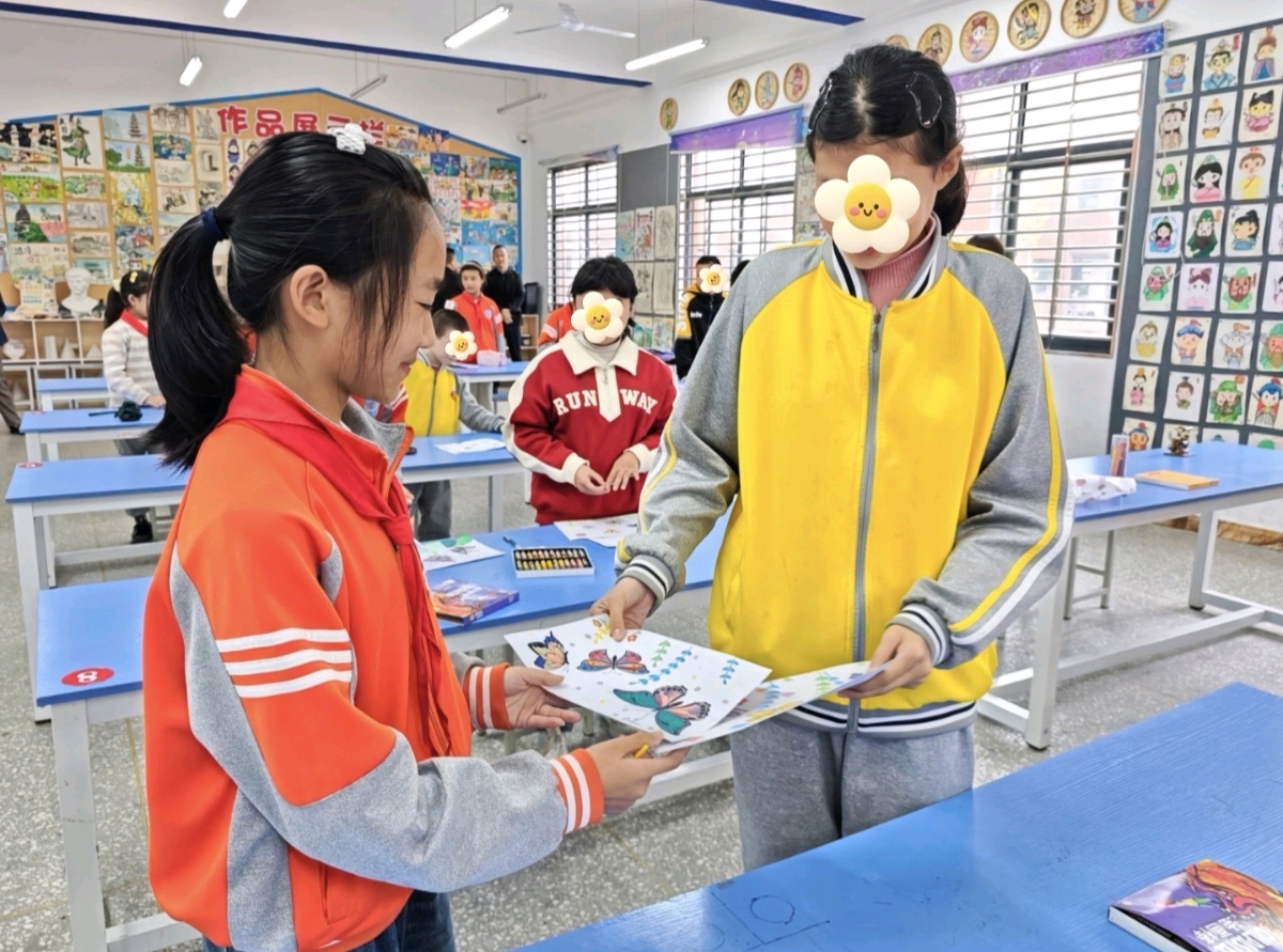 随后,结对伙伴们参与美术课《破茧成蝶》。东门小学学生耐心协助,特校同学专注创作,大家携手执笔,共同完成画作。作品互赠环节,孩子们互送祝福,现场暖意融融。(通讯员 陈沁 吕华丽)