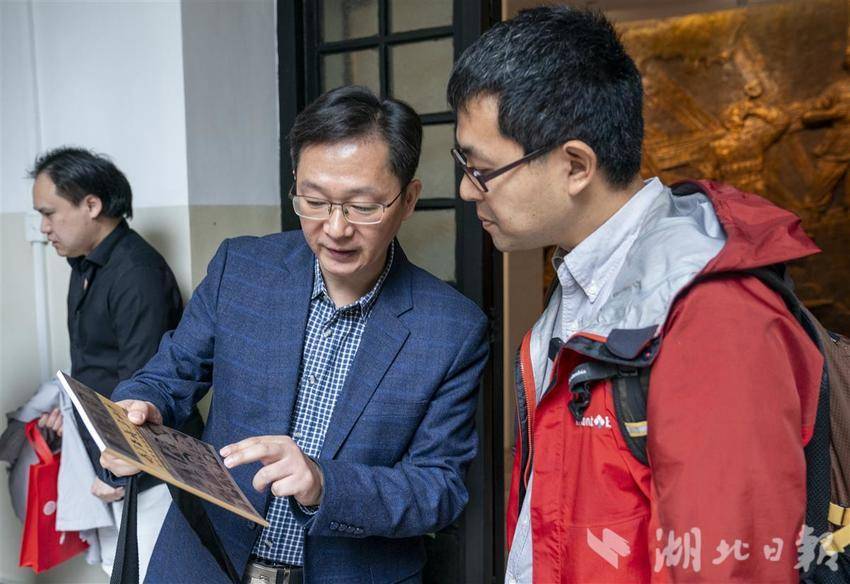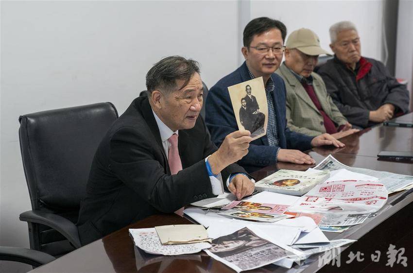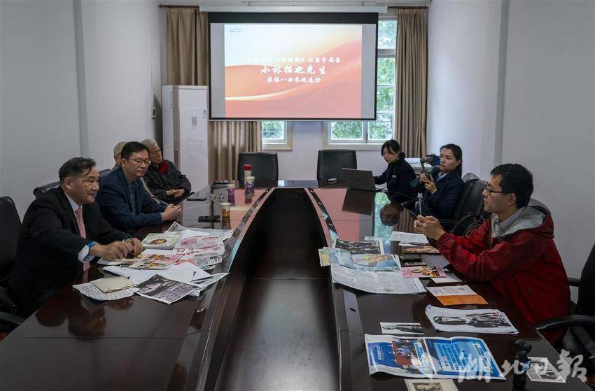 10月20日,八路军武汉办事处旧址纪念馆,日本《赤旗报》驻京记者小林拓也采访中国空军烈士陈怀民的侄子陈德。1949年出生的陈德,在华中科技大学工作,是陈怀民的哥哥陈天和之子。陈德告诉小林拓也,他是听着父辈们讲述叔叔的抗战故事长大的。采访现场,陈德和两位武汉民间收藏家,向中日记者展示陈怀民烈士的照片、遗物,以及从日本收集到的历史证物,和外国记者在武汉拍摄的抗战历史照片。纪念馆工作人员还陪同陈德一家和小林拓也,一同踏访汉口陈怀民路,了解武汉人民的抗战历史。(湖北日报全媒记者 魏铼 摄)