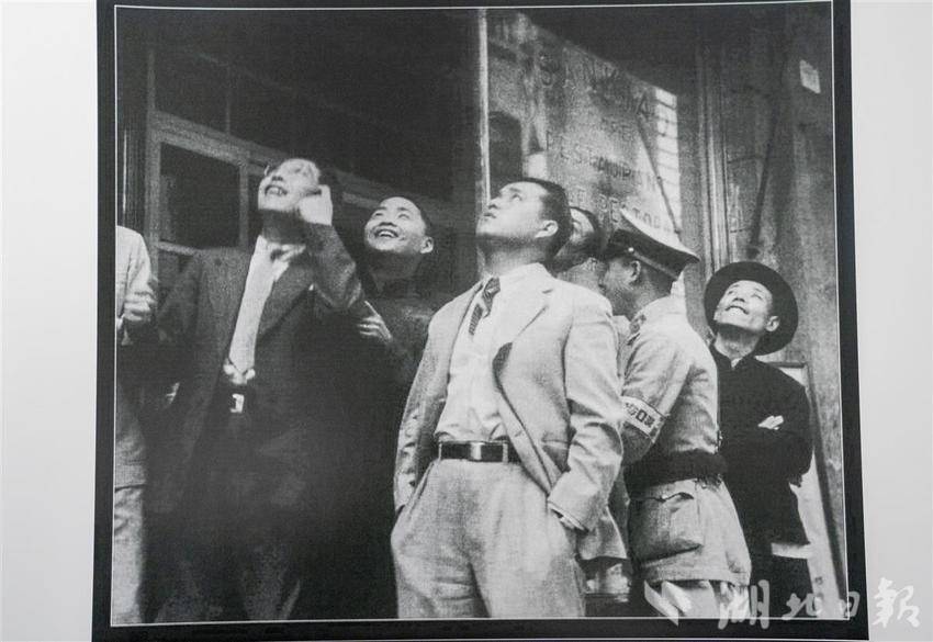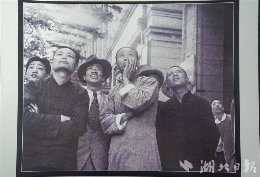 外国记者在武汉拍摄的抗战历史照片,当时武汉市民不惧轰炸,在街头观看中国空军在空中抗击日本侵略者