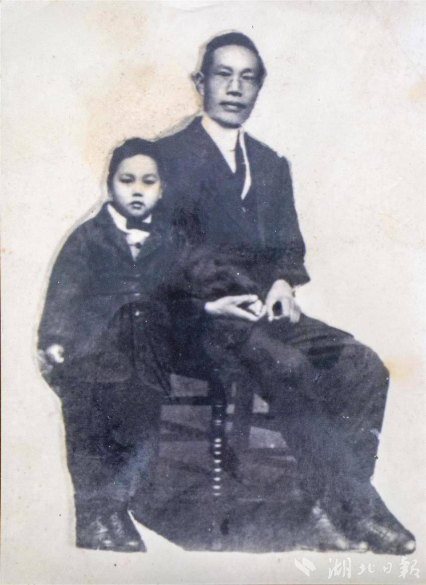陈德向日本记者展示祖父和幼年时期陈怀民的合影