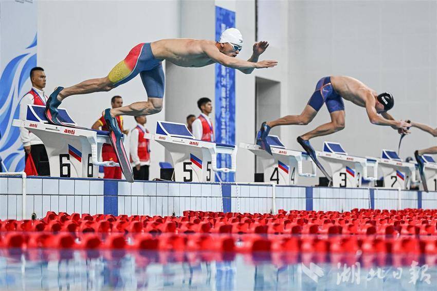 中国选手叶任堂在实用游泳比赛中。(湖北日报全媒记者 任勇 王际凯 通讯员 张佳豪 刘铁铮 实习生 王迅驰 摄)