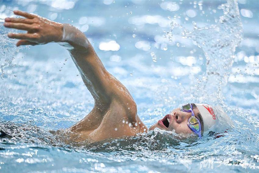 中国选手杨锦在实用游泳比赛中。(湖北日报全媒记者 任勇 王际凯 通讯员 张佳豪 刘铁铮 实习生 王迅驰 摄)