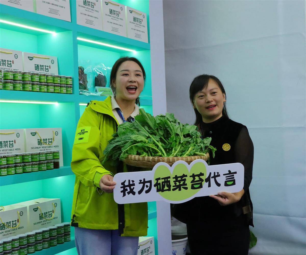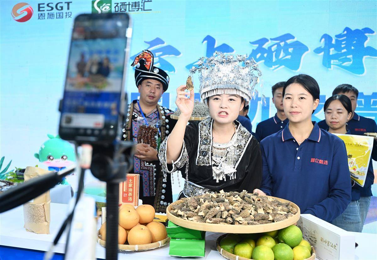 “家人们看过来,这就是咱们恩施的宝贝富硒油菜苔,脆嫩多汁还含硒。”在硒博会恩施市展区里,网络主播“酒窝书记”覃浩正面对镜头热情讲解油菜苔。屏幕上弹幕不断滚动:“富硒的油菜苔?想买。”“怎么下单?”面对网友的热切询问,覃浩笑着解释:“新鲜油菜苔还得等下个月才能大规模上市,不过咱们展柜上还有别的好东西。”