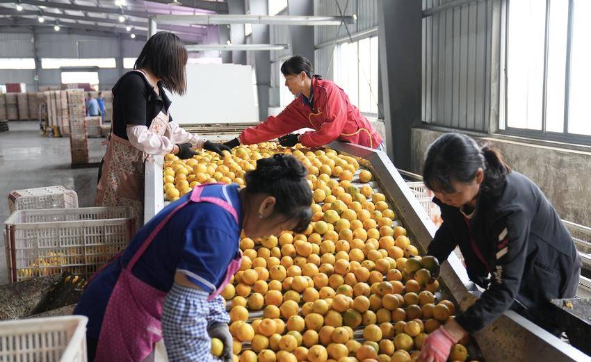 湖北日报客户端讯(通讯员秦一琛)10月17日,在宜昌洋红农贸有限责任公司车间内,工人们正熟练地将一颗颗柑橘分拣、包装。厂房外,多辆冷藏车有序排队,等待装载这批新鲜的柑橘。