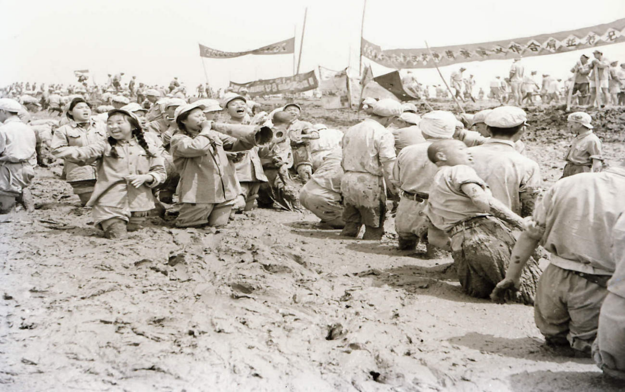 解放军战士入黄天湖排淤(湖北省档案馆藏)